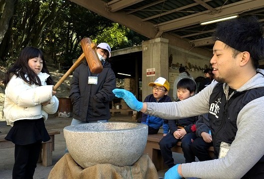 福笑いやたこを手作りして、みんなでお正月遊びを楽しみます!お餅をついたり、たき火でほかほか焼き芋を作ります。