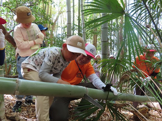 たけのこ堀りに挑戦!この時期、信太の森にはたくさんのたけのこが現れます。たけのこクッキングや竹を使ったクラフト、竹の灯りを囲んだキャンドルファイアなど森の恵みを感じるプログラムがいっぱいです!