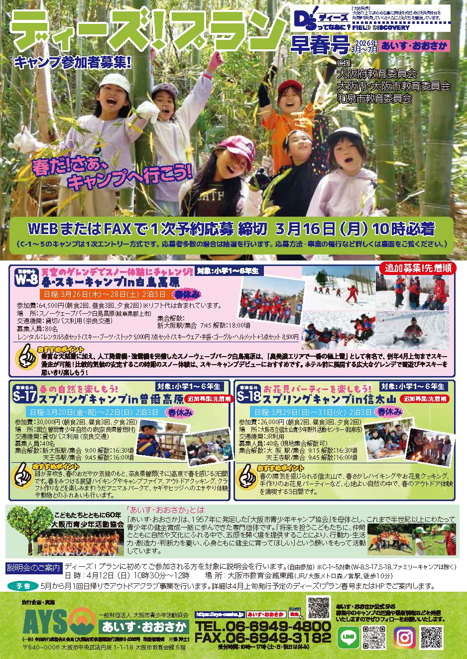 4月~6月までのキャンプは、3月16日(月)午前10時までWEBまたはFAXにて一次エントリー受付中!