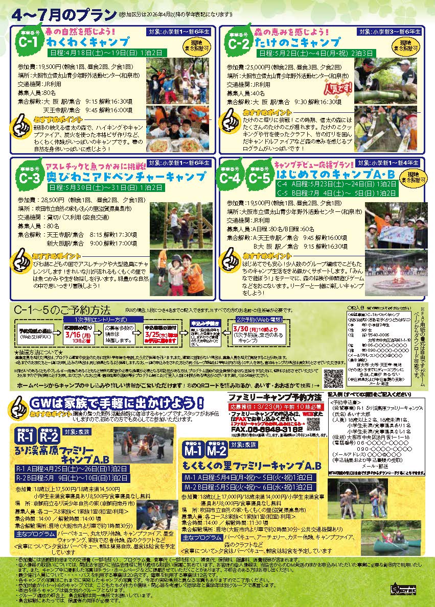 2026年3月~7月に実施するキャンプの楽しい企画をお届けします。
